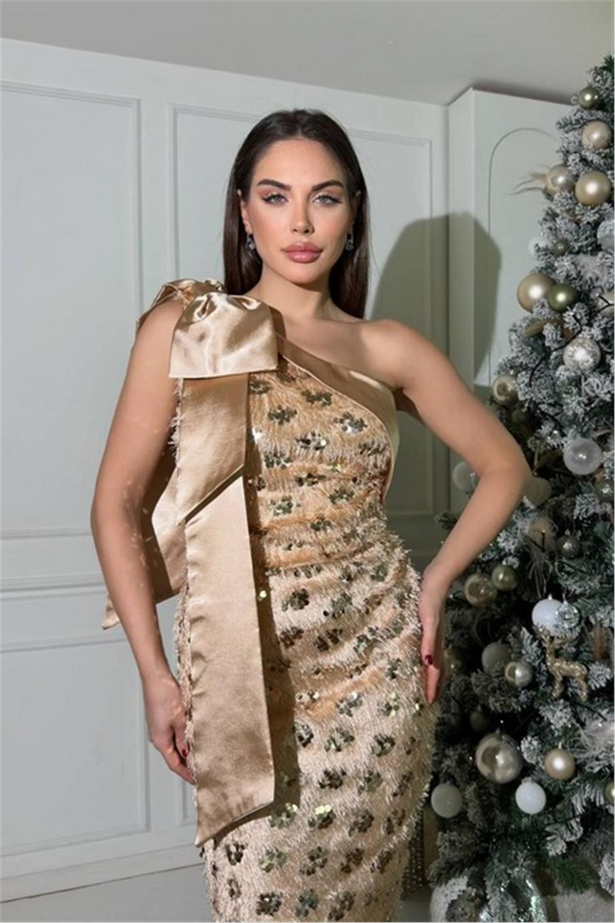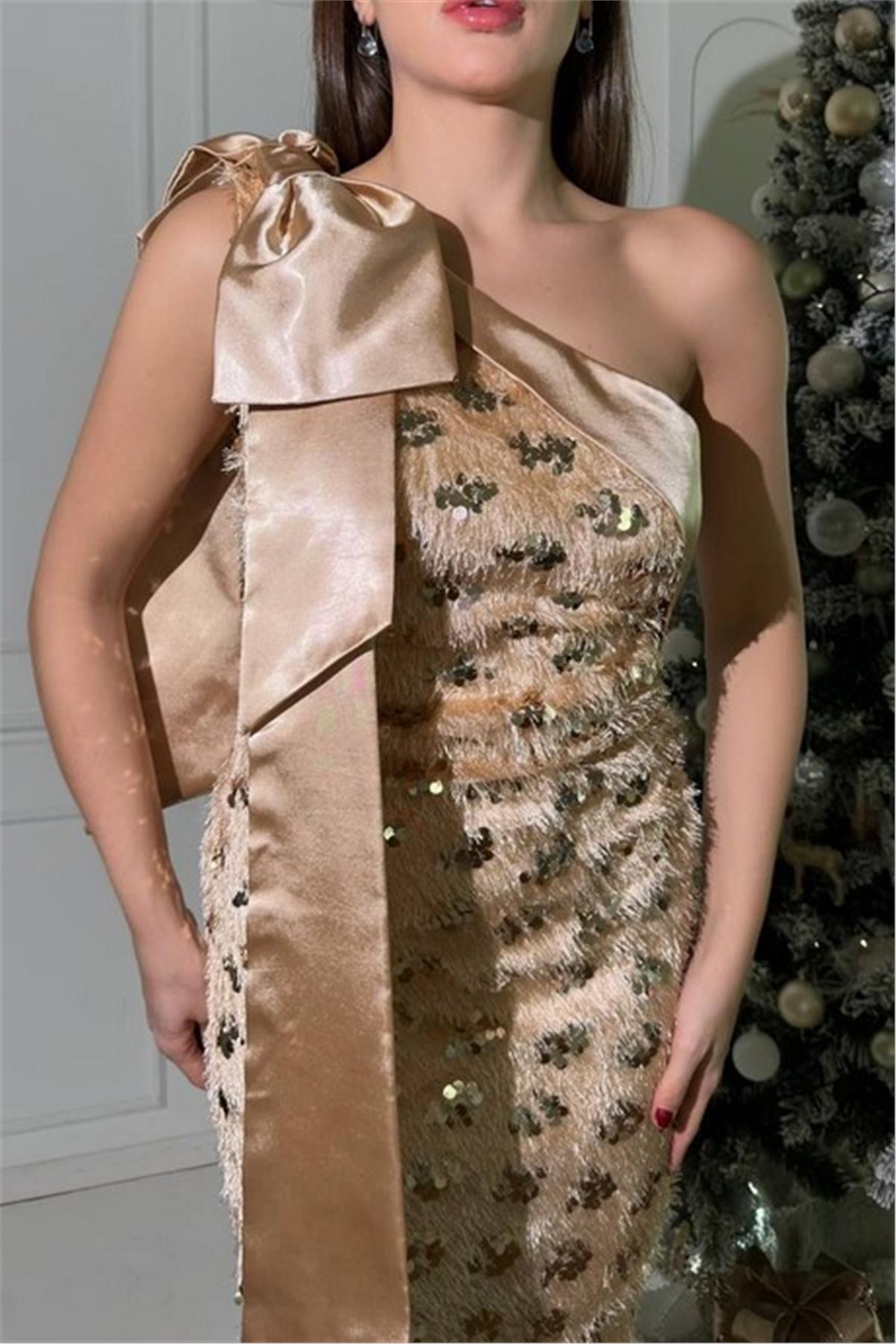 Kurdela Detaylı Yırtmaçlı Sarı Elbise