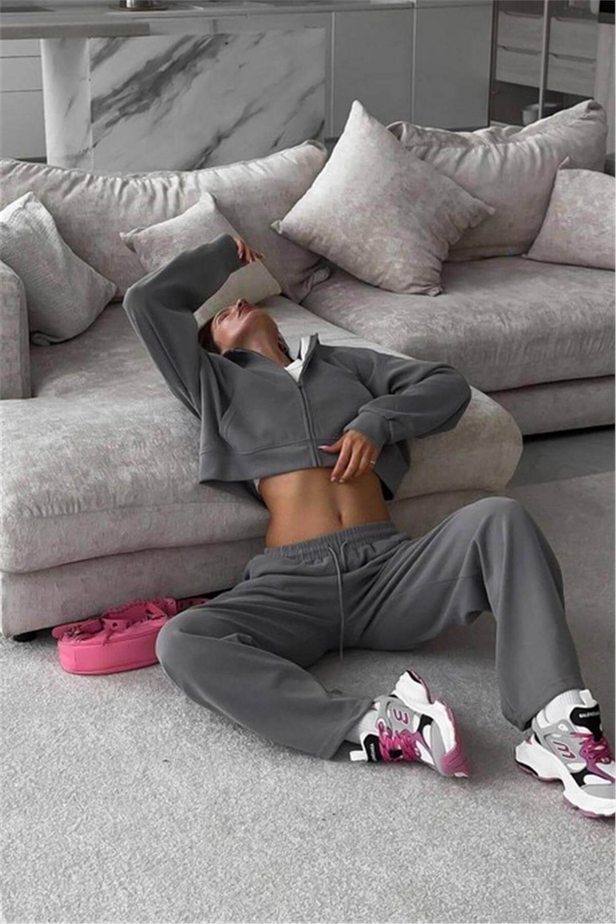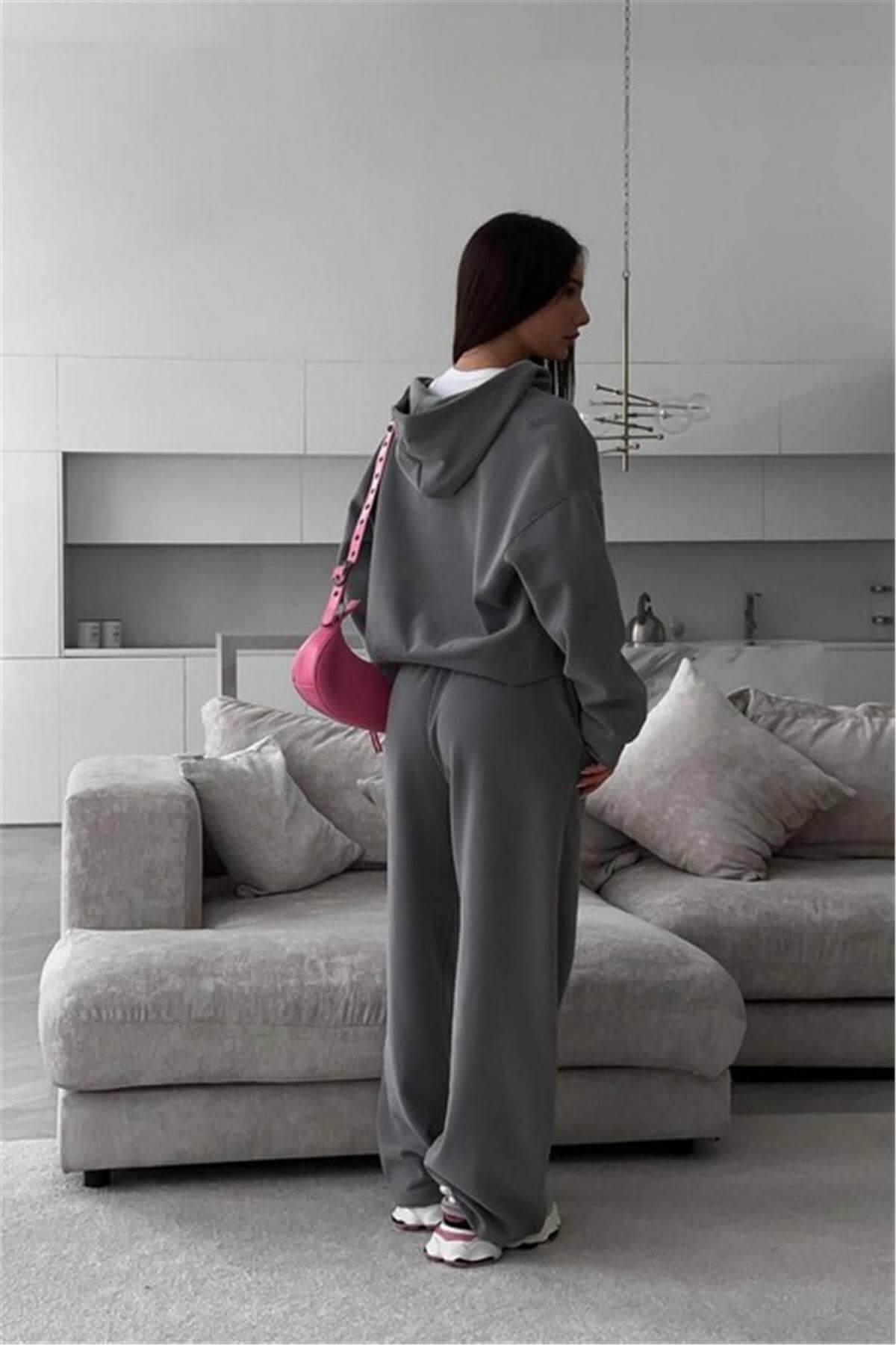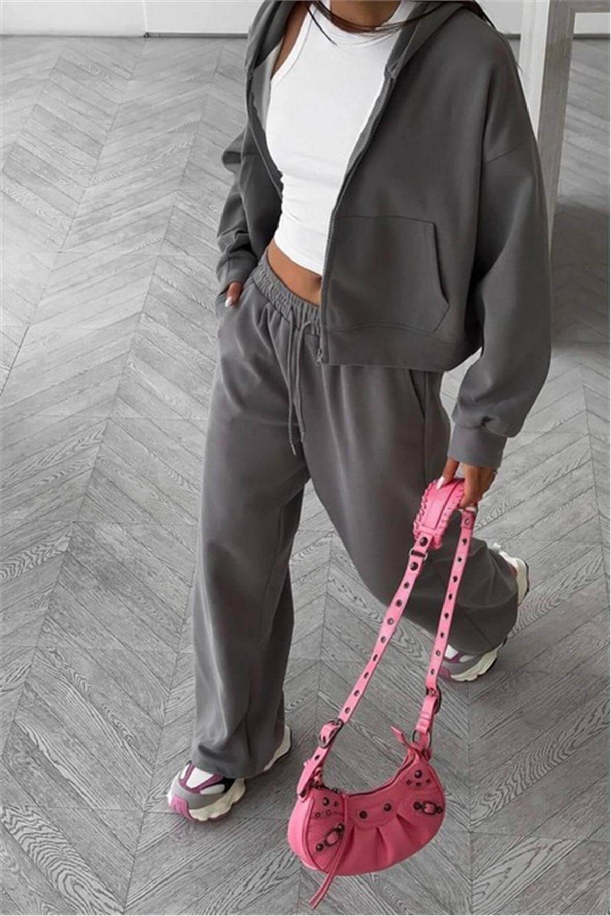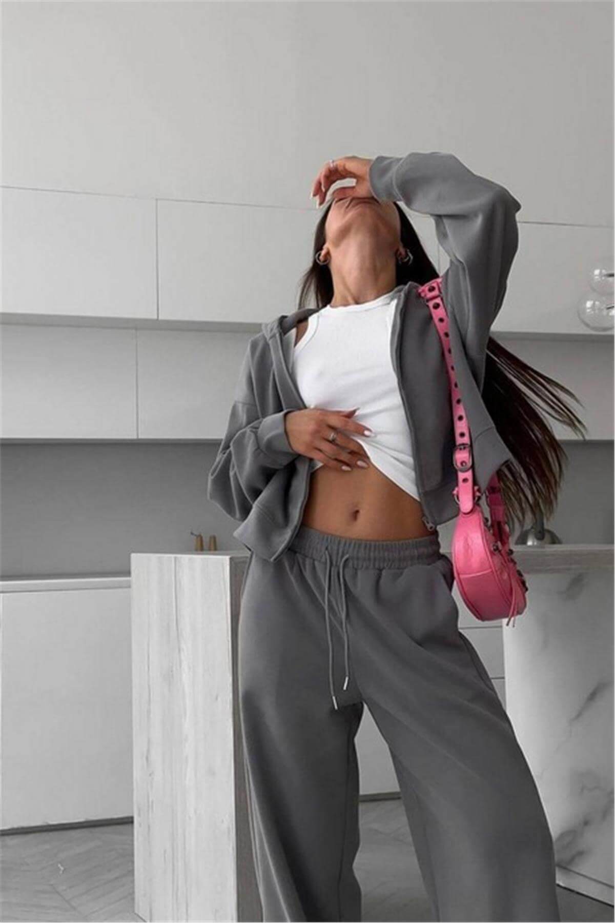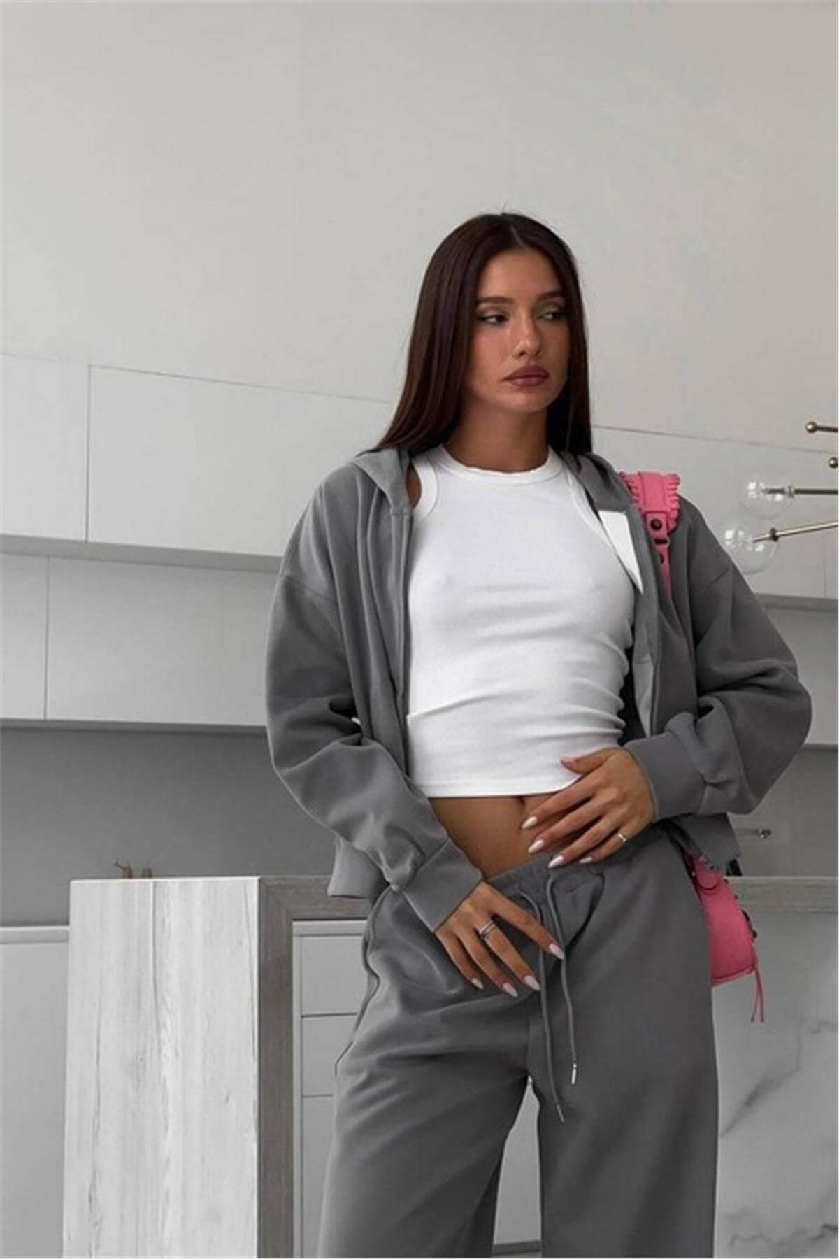 Kapüşonlu Fermuarlı Gri Eşofman Takımı