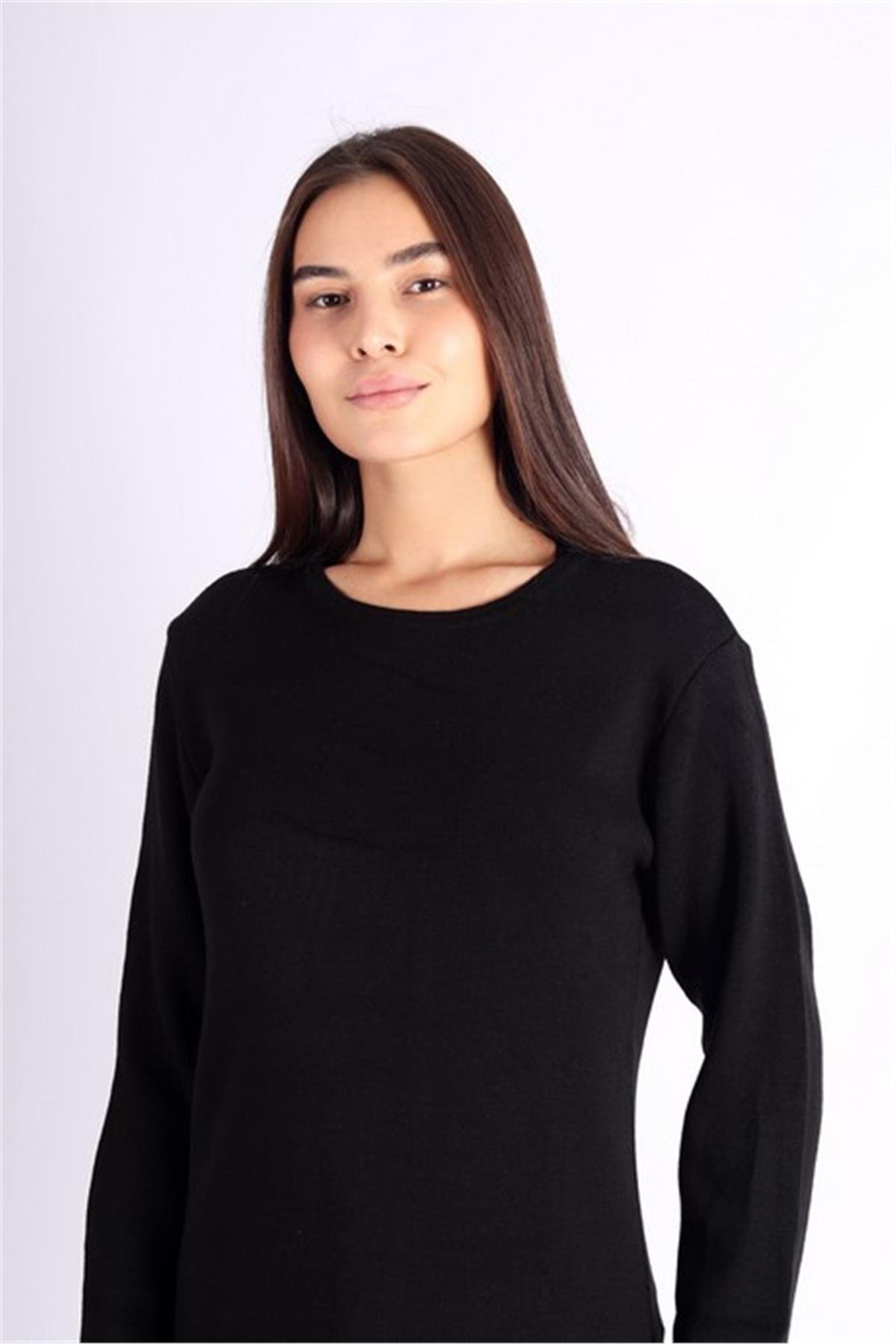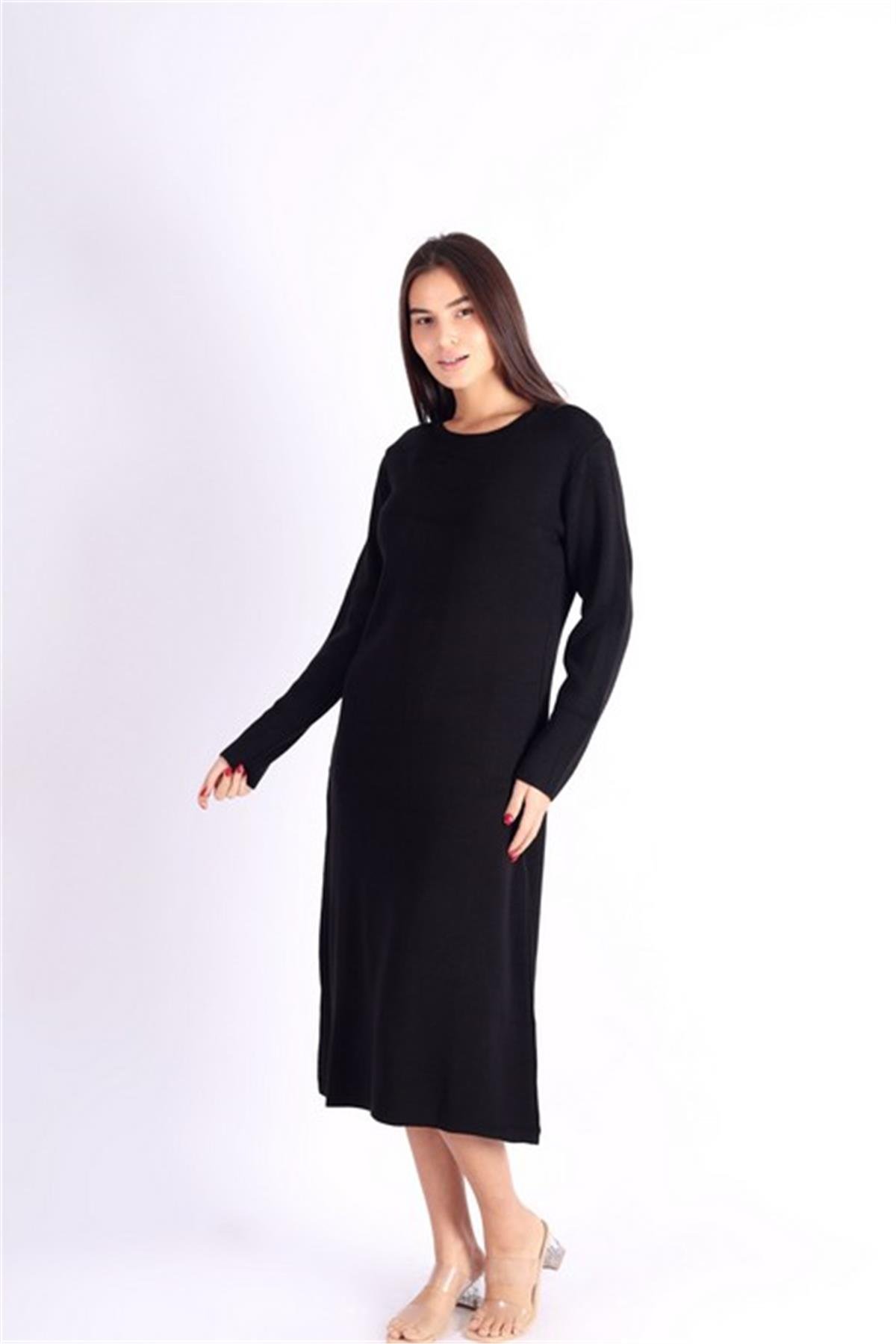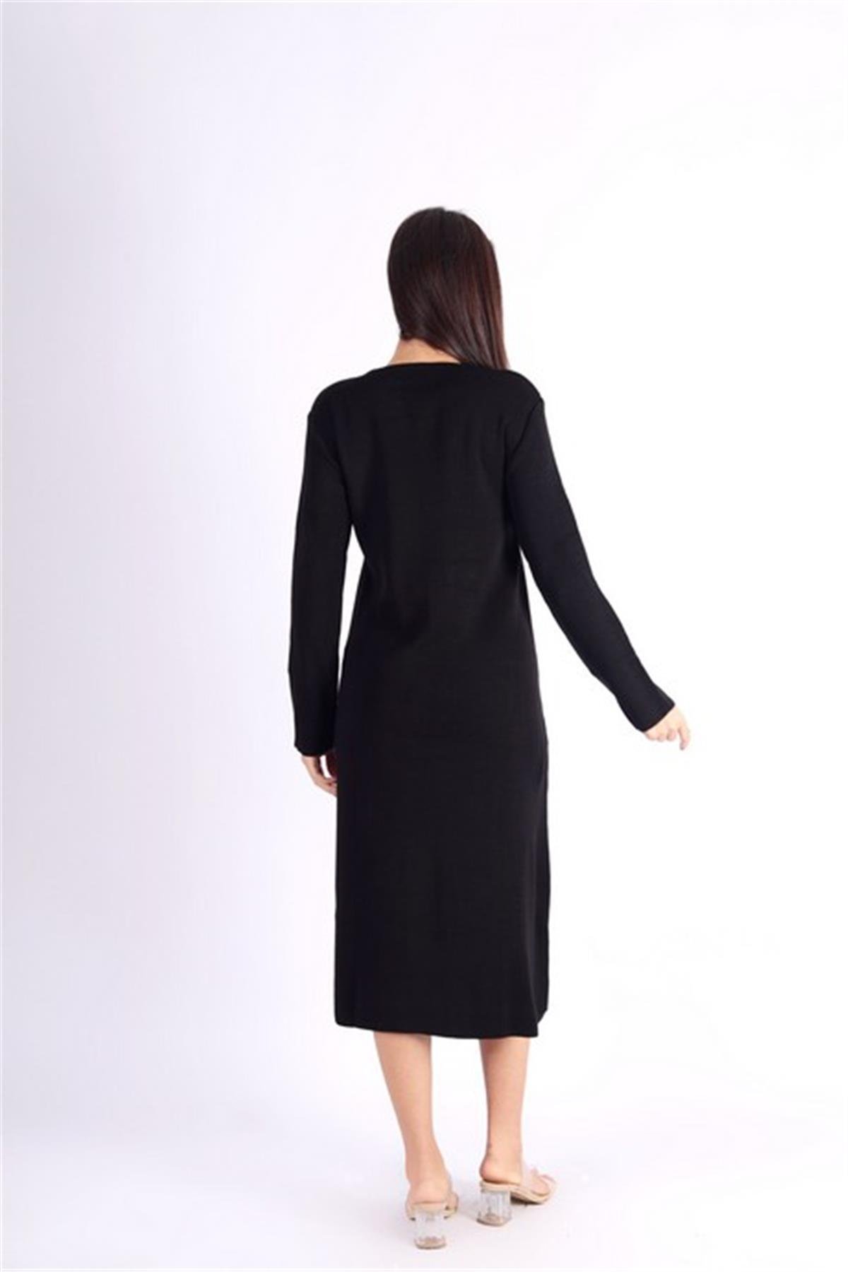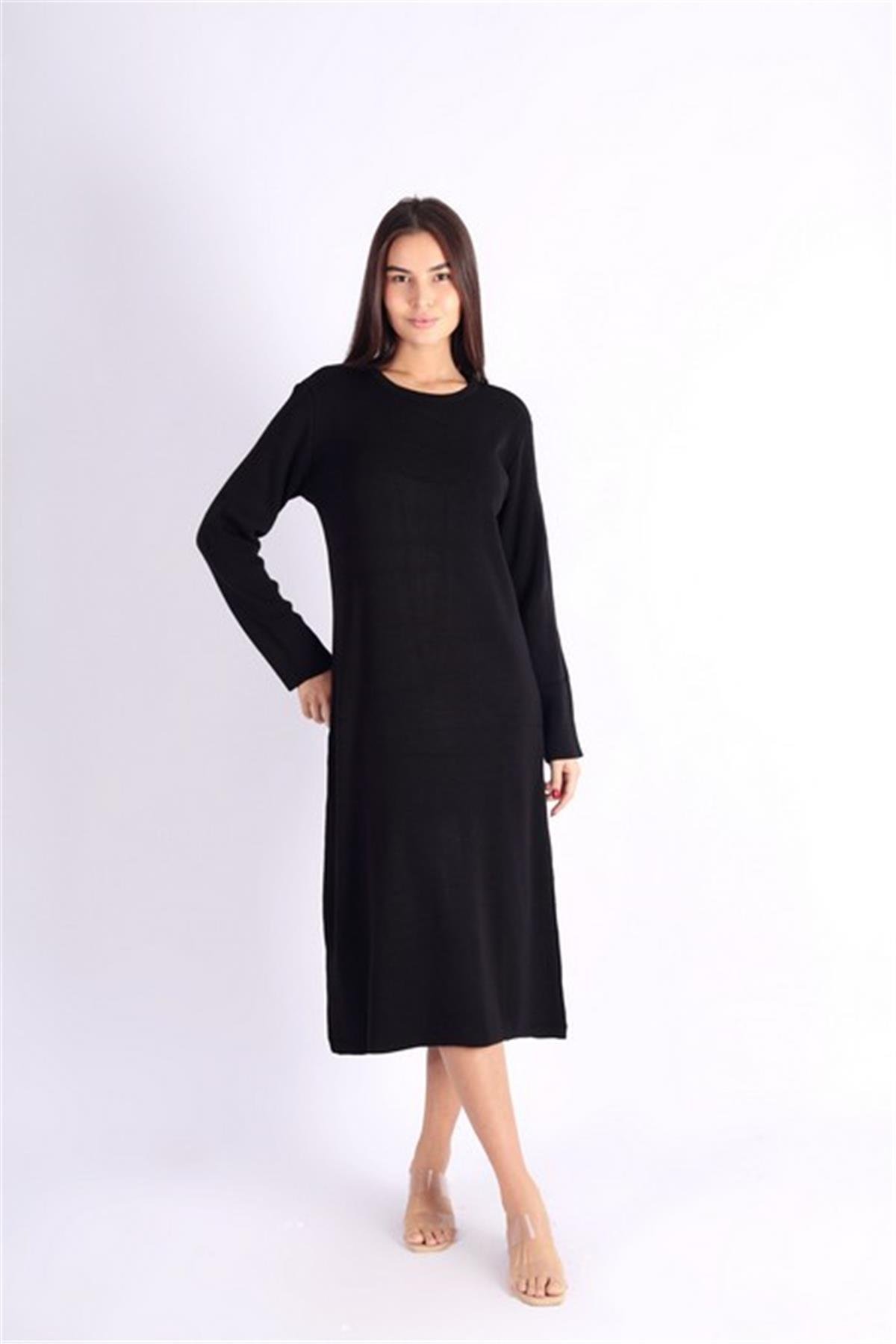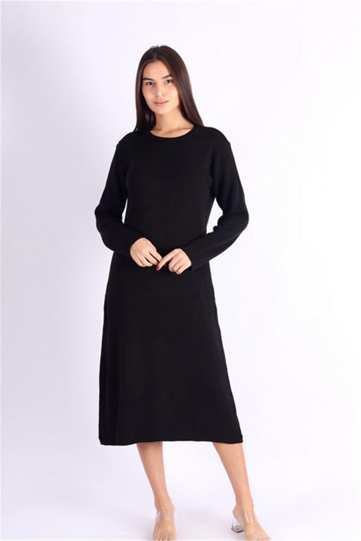 Uzun Kollu Siyah Triko Elbise